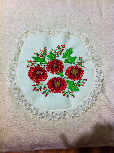 Polar, fieltro, galón, hilo dorado, pick y delcrón. Mide 70 cms de alto. Esta pieza requiere de bastante relleno, por lo que pesa y para darle soporte se requiere de una base plana para el cuerpo, ela ...