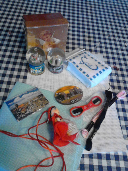 Estos me han llegado de parte de Vicen, todo chulisimo!!! se acordó de mis hijos con las bolitas y los imanes, de mi afición a los cuentos y entre ellos a Caperucita Roja, las mini tijeras ya las tengo en el bolso... junto con la funda de pañuelos!!! telas e hilos que siempre vienen bien. Gracias Vicen MUUUUA.