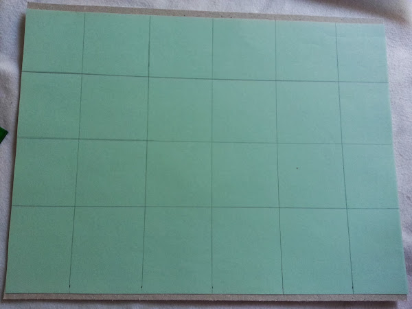 3) En el folio verde dibuja una cuadricula de 5cm x 5cm y pégalo al cartón.