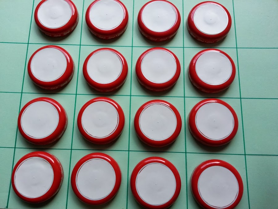 7) Pegaremos las circunferencias blancas en la parte de arriba de la tapa.