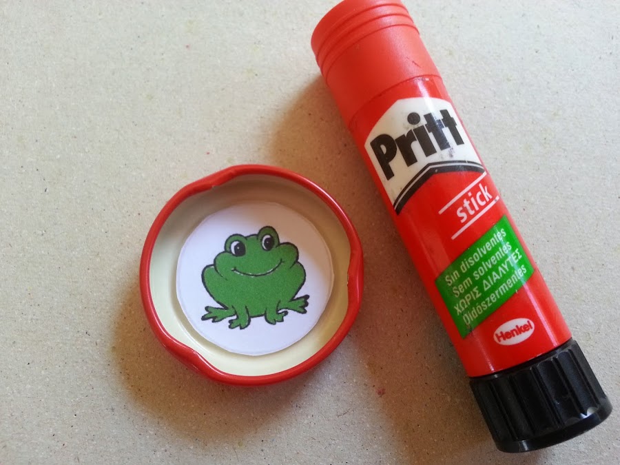 8) Pegaremos las circunferencias que tienen los dibujos en la parte interior de la tapa.