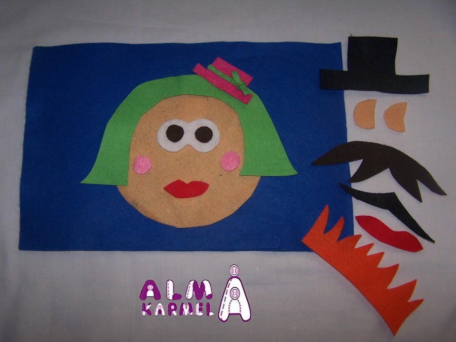 Hcemos una cara y sus complementos: ojos, mofletes, bocas, pelos, sombreros, bigote..... lo que se os ocurra.