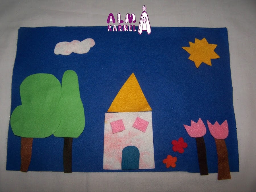 Para ello sólo tenemos que pegar un trocito de velcro adhesivo por la parte de atrás de cada forma, y se pegará al fieltro sin que se nos caiga.