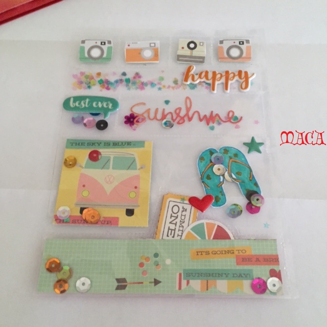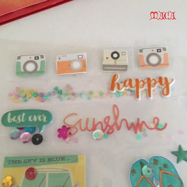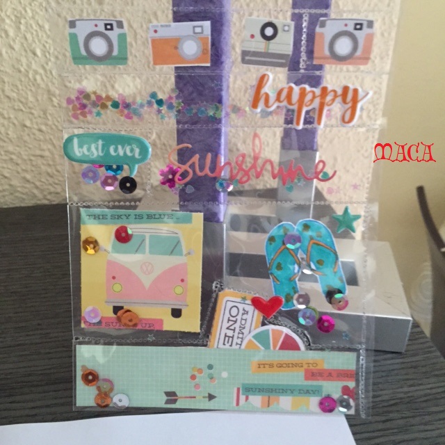 pues bien en el kit venia una un sobre de plástico transparente, con mucha paciencia y el photo sleeve tool fui haciendo bolsillitos, metiendo recortitos de los papeles , lentejuelas etc.