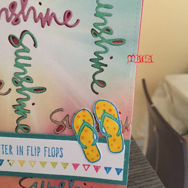 después selle recorte y pinte unas chanclas un sentimiento con los sellos del kit y voila