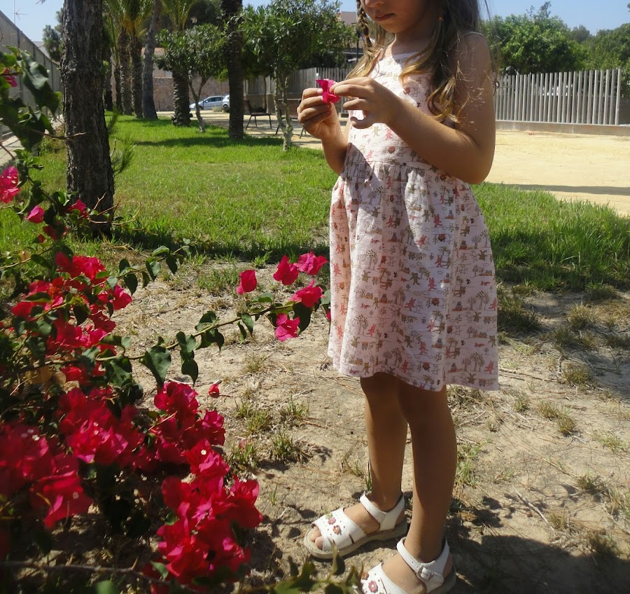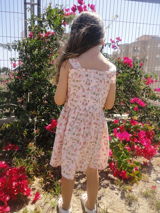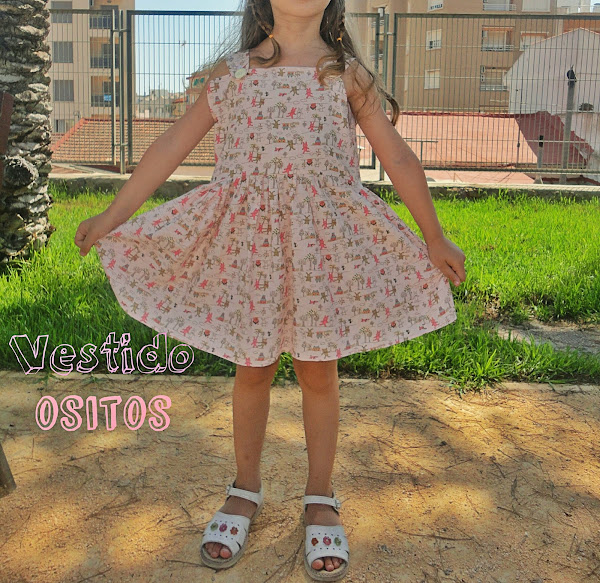 La tela es de ositos, casitas..., en tonos pastel, es de esas telas que te encantan cuando las ves y la he tenido guardada hasta encontrar un diseño que me gustase.