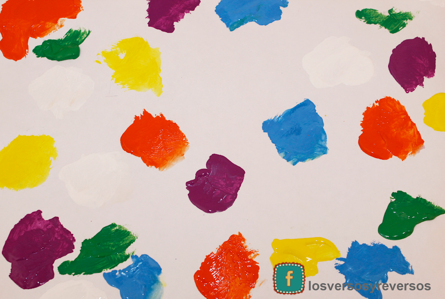 Utilizamos una hoja de cuaderno de dibujo (es más gruesa que el papel bond) y diversos colores de pintura acrílica. Pusimos con el pincel, uno a uno de los colores favoritos sobre la hoja como muestra la foto que está aquí abajo.