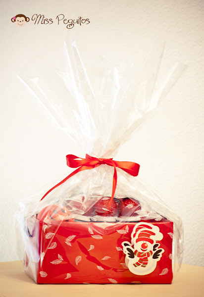 Papel celofán, una pegatina navideña y ya tenemos regalito.