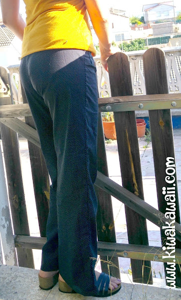 Algunas modificaciones por el camino: Lo reduje casi por todas partes, corté la talla 34 pero le quité un poco de ancho de pierna, y un mucho de la altura de cinturilla... lo recordaba altísimo aunque a pesar de haber quitado bastante, sigo viéndolos muy altos. Además los bolsillos me han quedado muy arriba, a pesar de ponerlos donde marcaba el patrón. ¿Descoser? ¿Con este calor? Va a ser que no, jijiji!