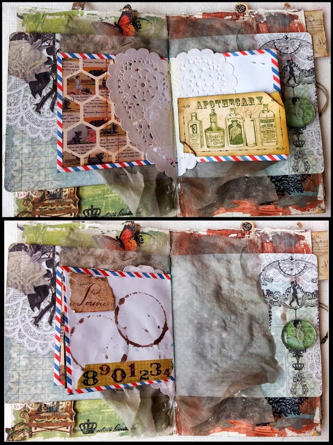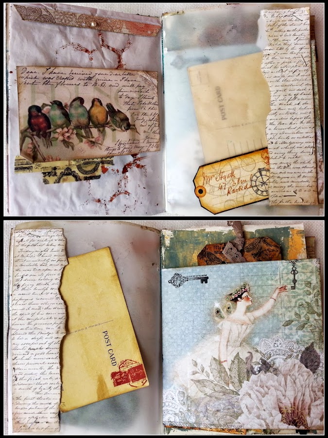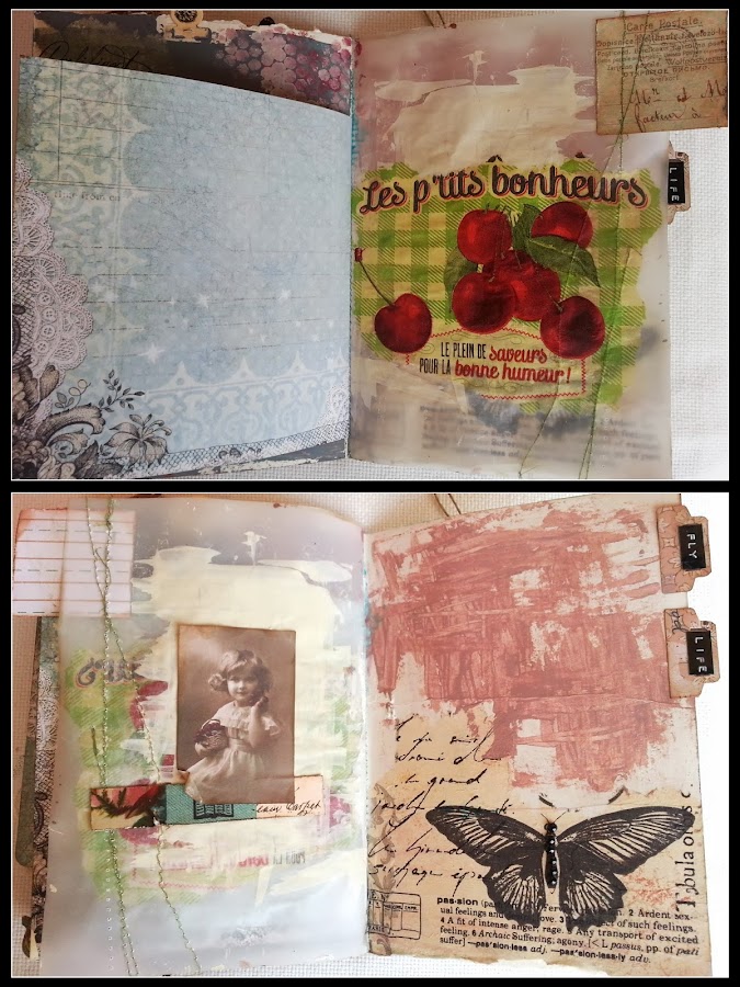 Ayer fue una tarde de lo más entretenida... un hurra!! porque por fin me decidí a sacar de la caja y probar mi maquinita de coser....y creo que ya somos un poquito más amigas... y en ese intento de acercamiento, se me ocurrio empezar a coser todo lo que pillaba así juntito, una cosa encima de otra, para hacer alguna estructra que luego pudiera utilizar para algo ... entonces me acordé de una amiga, Montse, que en unas de nuestras charlas, nos hablaba de unos "nosequé" que se llaman "Junk Journal", y es precisamente eso; crear una especie de álbum desestructurado donde marranear y enganchar todo lo que se te ocurra...algo así como un art journal pero más completo o más a lo bestia, como queráis llamarlo. así que a eso me puse; cogí diferentes papeles ( acuarela, vegetal, scrap... ), tela, sobres, tags , luego lo fui doblando todo a la mitad, y lo cosí por el centro, no sin poco de mieditis.... jijiji pero no tenía mucho que perder tampoco, así que quién dijo miedo!!!!! Me he divertido mucho porque no hay normas, no hay reglas, y aunque en mi afán de ser perfeccionista igual hay cosas que están "demasiado bien hechas" a mi me ha encantado!!!!! Así que seguramente repetiré.