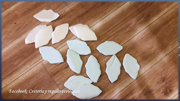 Las flores blancas no necesitan pintura, y son un poco mas pequeñas que las azules. Para decorar el centro podemos usar falsas gemas, perlas, abalorios o cuentas de algún collar o pulsera que ya no uses...