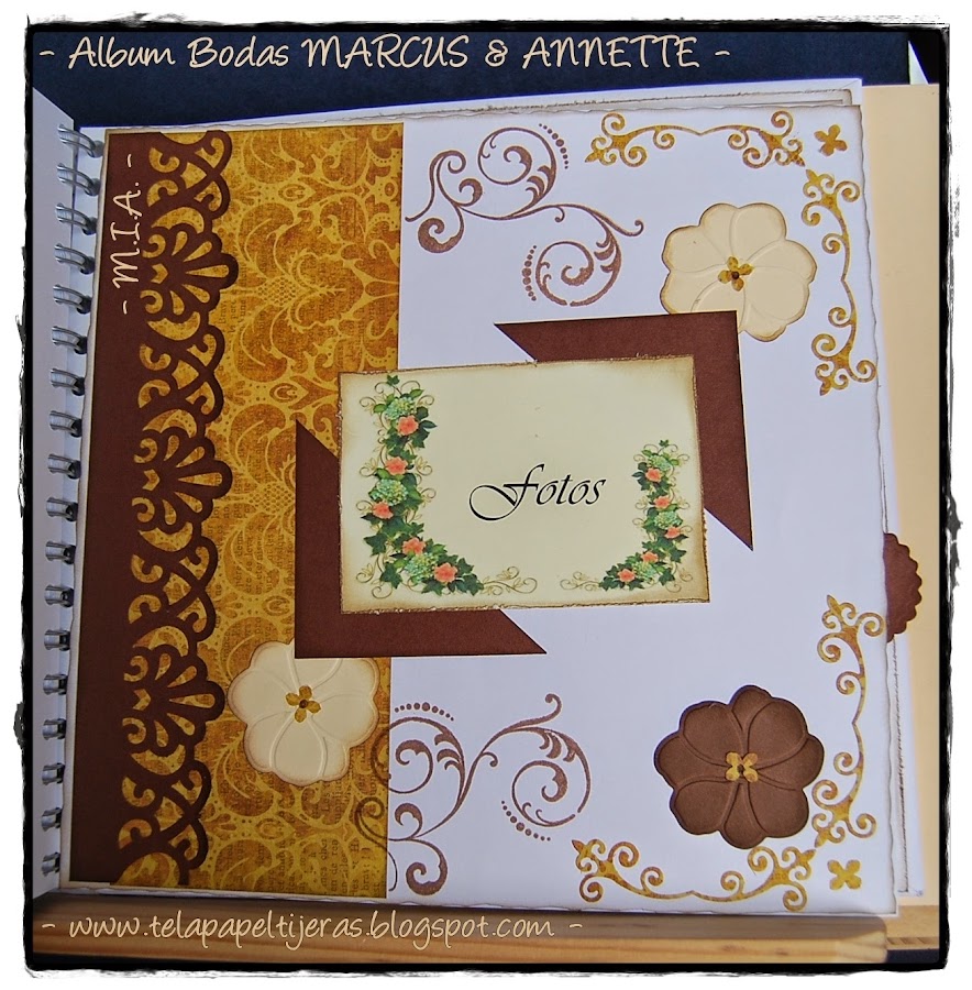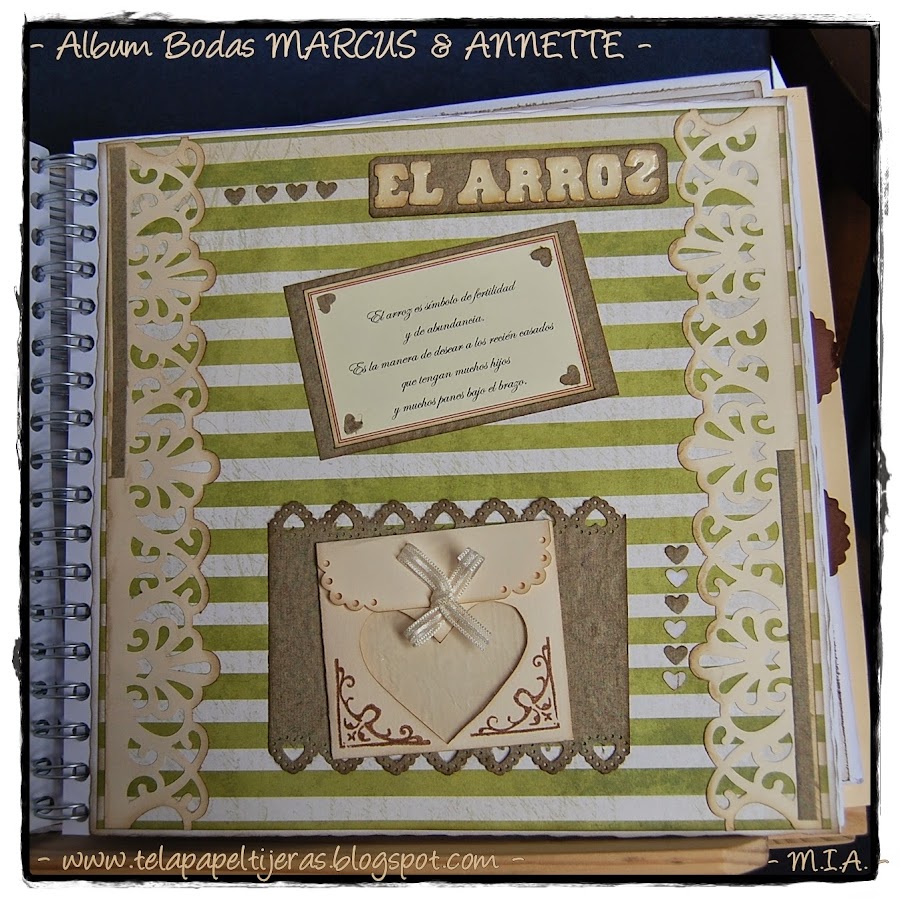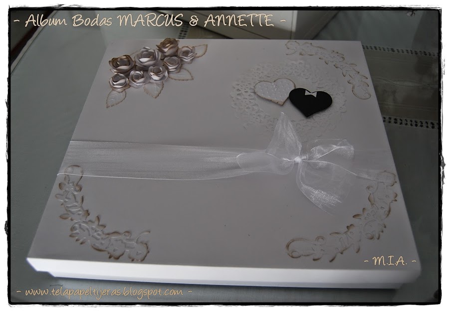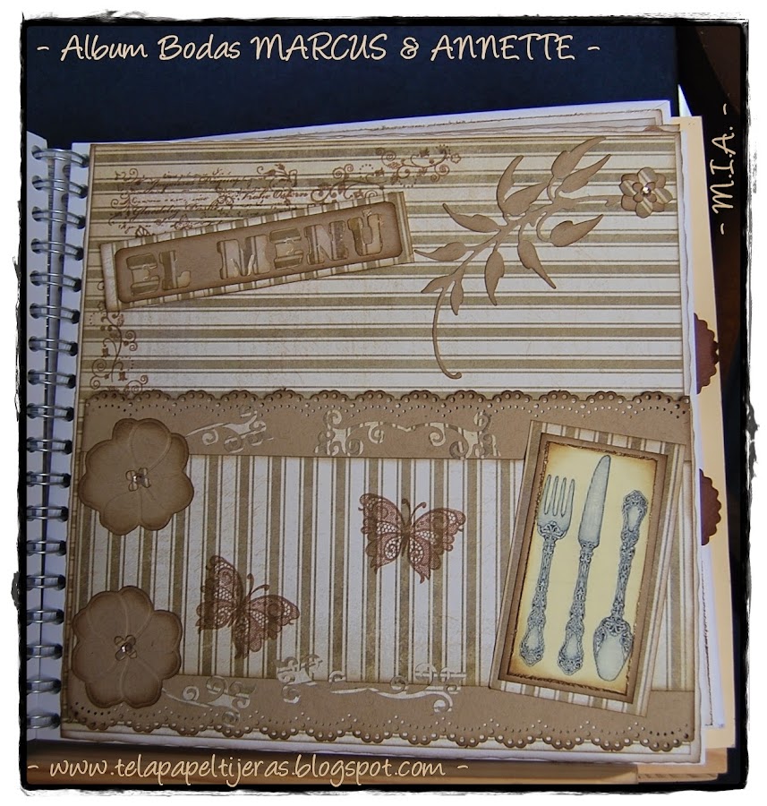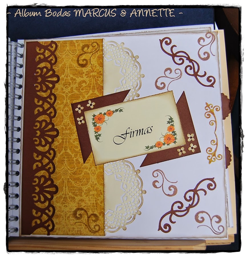 Los papeles de la Colección de "My Mind´s Eye" ... Y como adornos troquelados, perlitas, encajes, sellos y mucho, mucho cariño esperando que sea un bonito recuerdo para los novios de ese día tan importante...