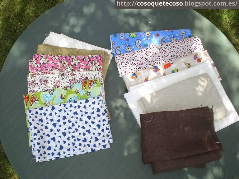 Y, ahora ya nos vamos de tiendas, la primera, Tejidos Meco "al corte", en ésta mis compras fueron de telas de patch (a 4,50 euros el metro), un lino ideal y un poquito de arpillera en color chocolate (este color aún no lo he probado).