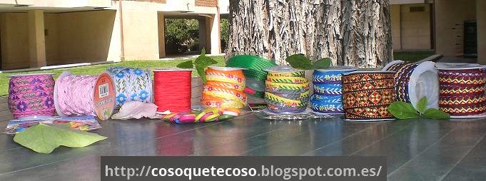 Efectivamente, apuramos hasta el cierre, y ya nos fuimos al chino de Getafe, aquí la locura, las cintas que os enseño comprando 10 salen a 0,60 la unidad (tienen dos metros), al mismo precio la piculina y la goma de color rojo. Algunos botones y charms que no recuerdo el precio.