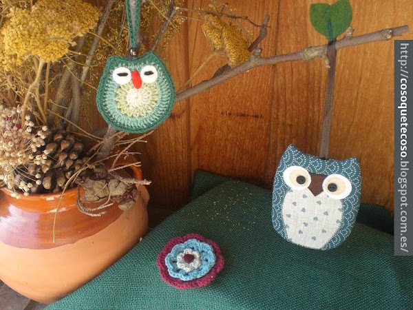 El broche lo estrené según me lo dió, el búho de tela ya lo llevo con las llaves del coche y el búho de ganchillo está dándome suerte al lado de la pantalla del ordenador. Todo hecho perfecto, ni os lo podéis imaginar.