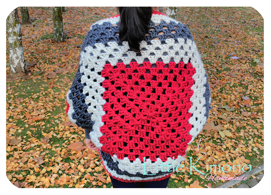 Me puse manos a la obra y después de buscar unos cuantos modelos y patrones de prendas, di con una que me gusto muchísimo porque era súper fácil de hacer y el resultado final molaba mucho, era un kimono hecho a partir de un granny!