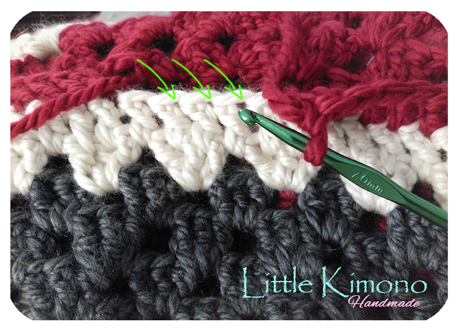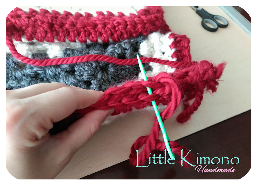 Mi kimono está hecho con los colores que elegí en su momento para la manta pero podéis usar una sola tonalidad si lo deseáis ;)