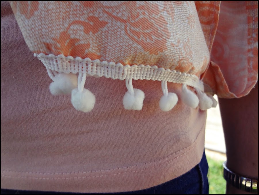 Y por toda la parte de abajo le cosí una tira de pompones para darle un toque más original y que no fuera tan simple.