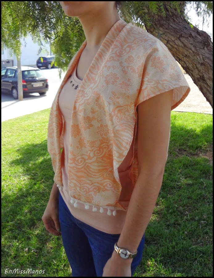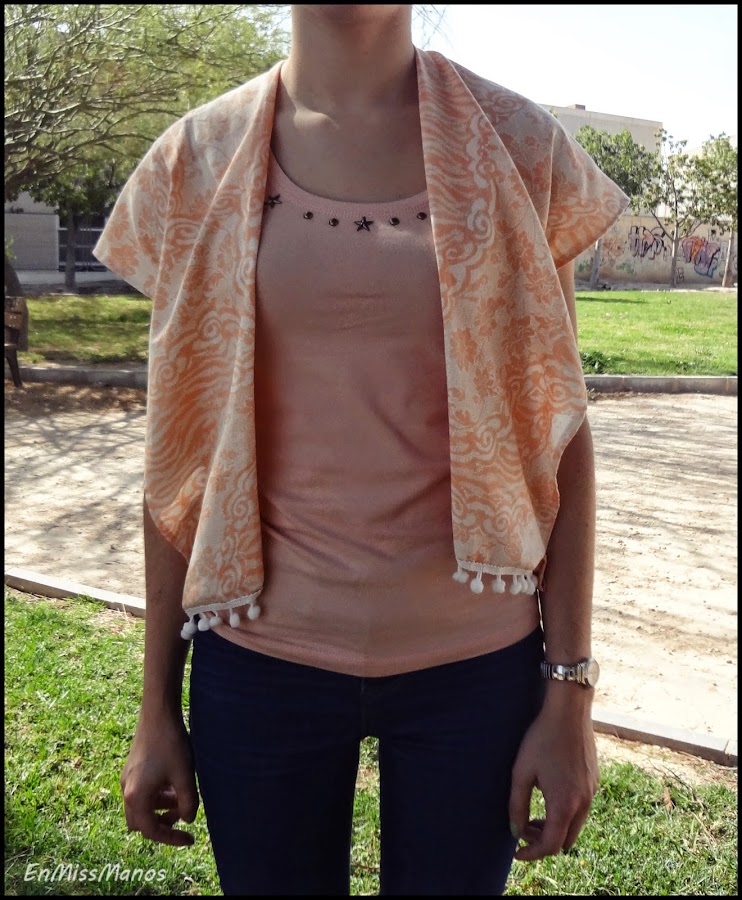Me ha faltado coserle en toda la parte delantera alguna cinta blanca o algo para darle un acabado más completo. Si encuentro alguna que combine bien lo haré.