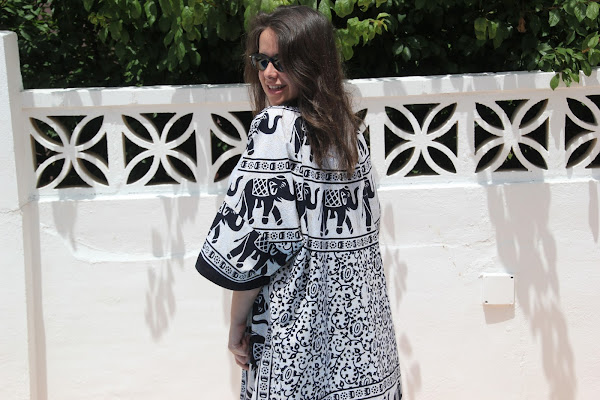 Este verano, quería un kimono hippie, con dibujos étnicos, largo hasta casi los tobillos y de colores blanco y negro que me fueran con cualquier tipo de bikini. Quería algo fresquito y cómodo, para poder estar en la piscina o en la playa, y disimular aquellas zonas que no me apetece mucho enseñar todo el tiempo debido a los kilitos de más del embarazo. Cada una con sus complejillos :D
