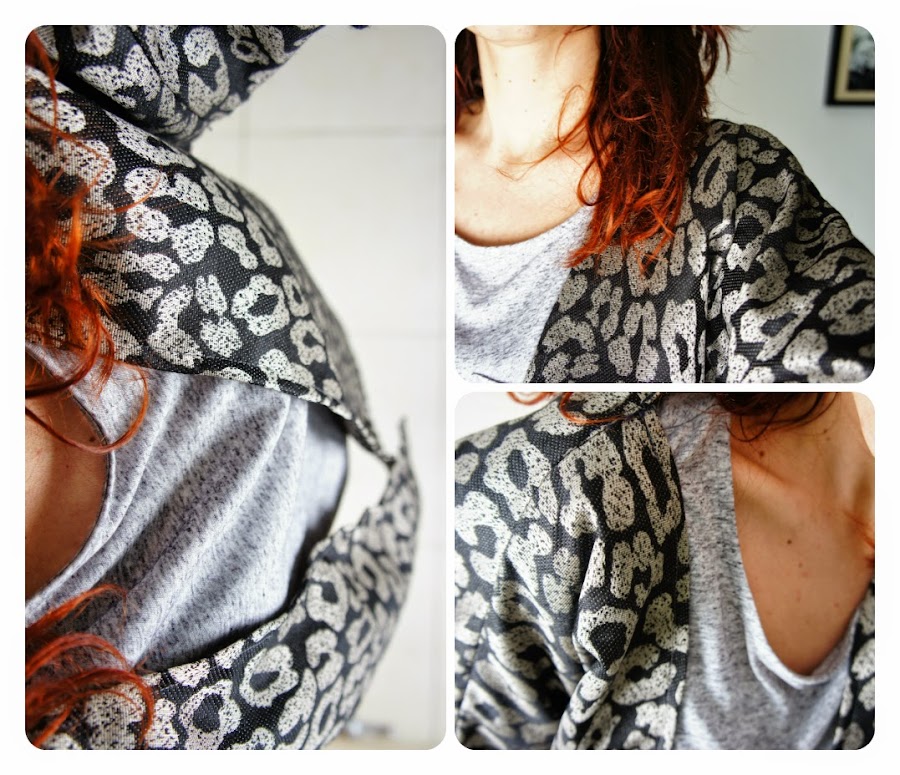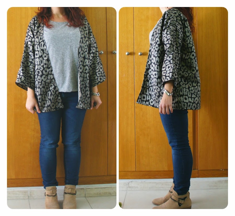 En total me llevó un par de tardes. Usé una tela algo rígida y sin mucha caída, (para hacer un kimono se usan telas más vaporosas), pero eso hace que tenga más consistencia de chaquetilla de entretiempo.