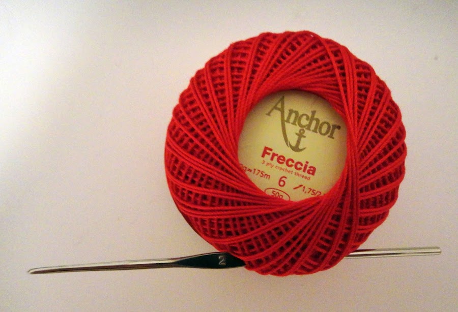 El esquema de la puntilla lo encontré en Pinterest, aunque yo la quería un poco más ancha y le añadí un par de vueltas. He utilizado este tipo de hilo y de ganchillo para hacerla (publicidad gratis, ya me podían regalar los ovillos jajajaja). Usé 4 ovillos, aunque del último me ha sobrado bastante.