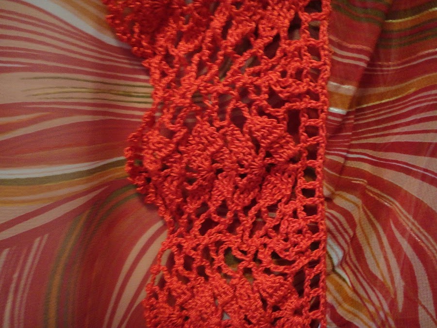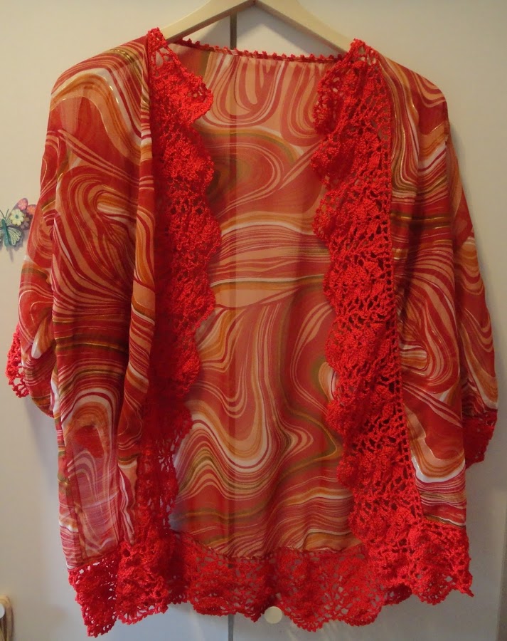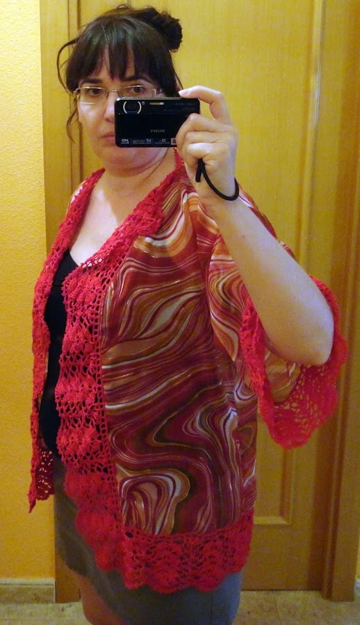 El problema es que tenía poca cantidad de tela, y me quedaba una prenda un poco corta y un poco estrecha para mi gusto. ¿Cómo lo he solucionado? Añadiendo una puntilla de ganchillo. ¿Qué pensarán los japoneses de que llamemos kimono a esto?