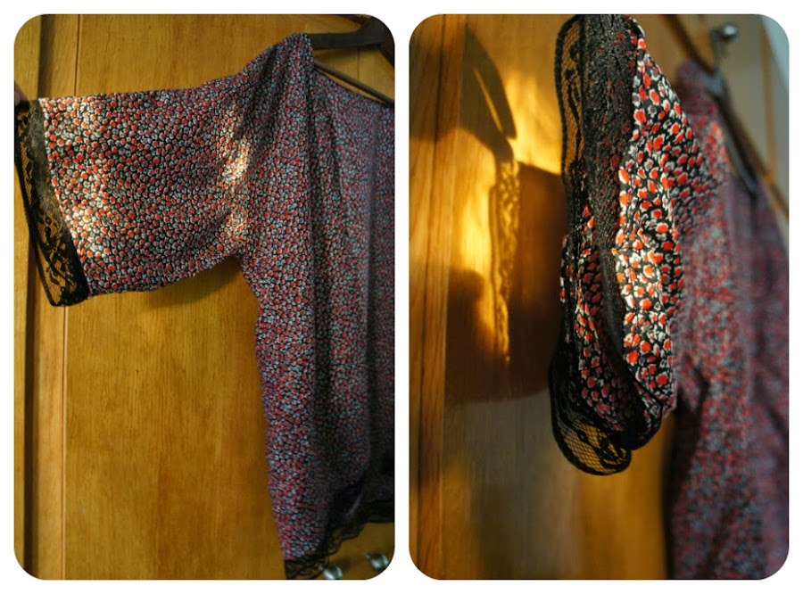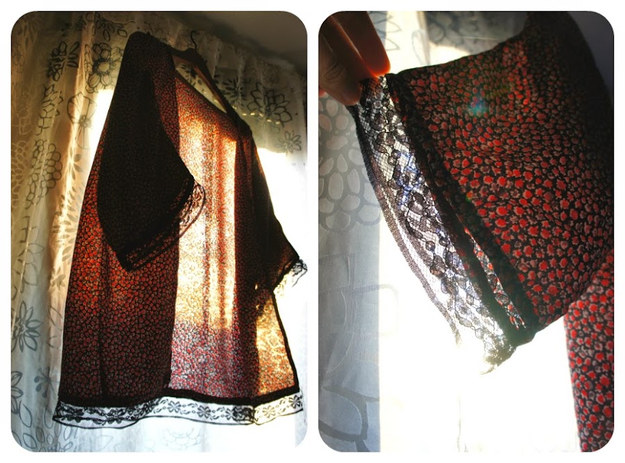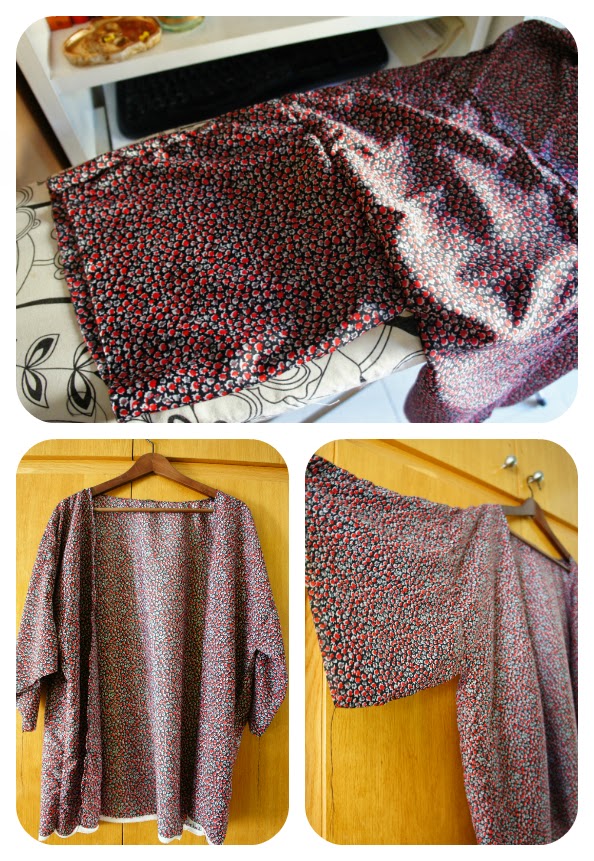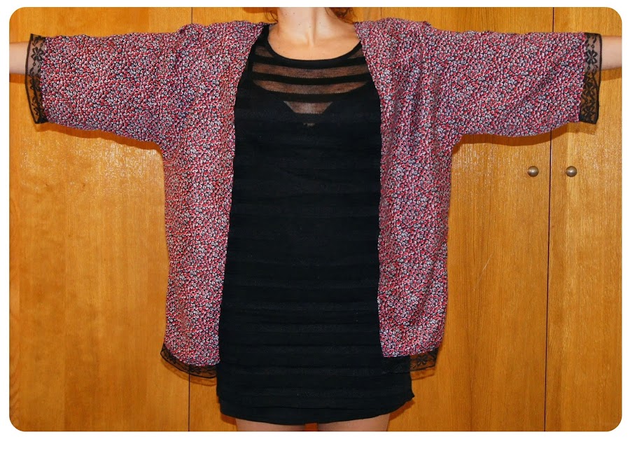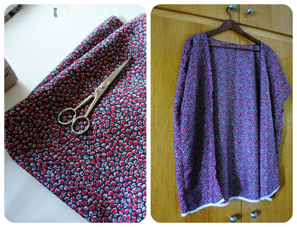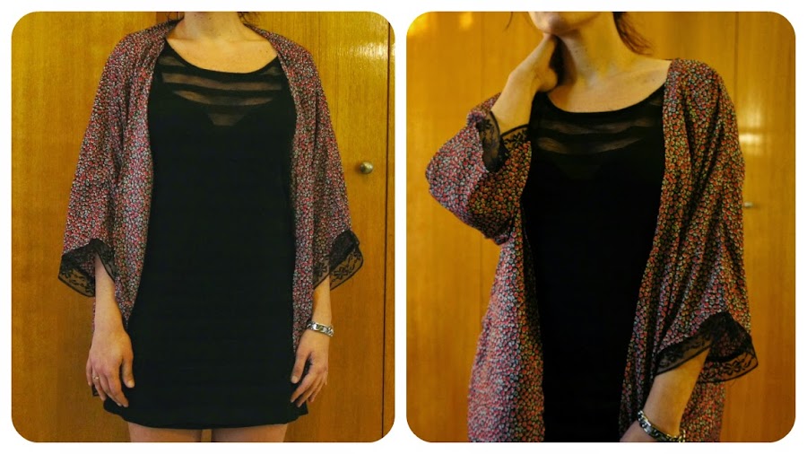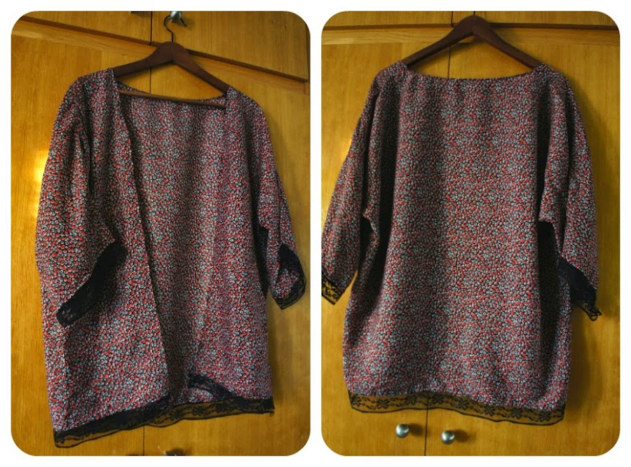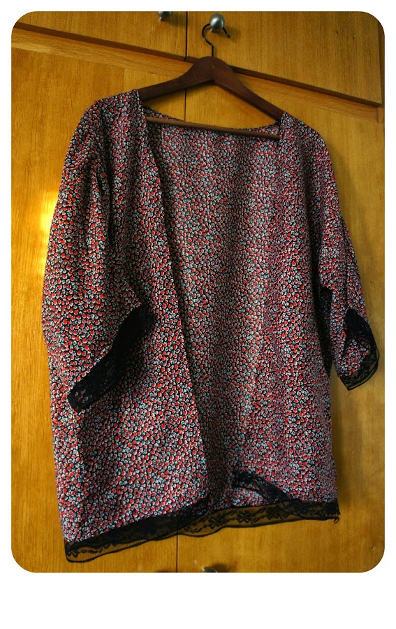 Otra versión del kimono, para que veáis que, según la tela elegida, es una prenda con infinitas posibilidades. Esta vez le he dado un aire de "Salto de cama", (o camisola...).