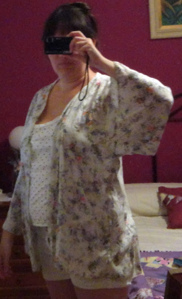 Como soy tímida, me tapo la cara con la cámara. Pero si tenéis alguna duda en las medidas o en la confección, no dudéis en preguntar. Sabéis que ando por redes sociales, Facebook. Twitter, Pinterest e Instagram son mis favoritas. Y voy a ponerme a coser otro kimono, que tengo otra tela maravillosa esperando desde ayer.