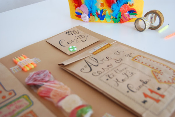 Y así surgió nuestro kit de cumpleaños (lo qué nos gusta un kit lo podéis ver aquí, aquí o aquí...). Entre ideas mías, de mis hijas, una tarde coloreando y poniendo en práctica el "deja que se equivoquen, deja que te sorprendan" (que ya es de los post más leídos!!). Y de paso llevando a cabo también nuestro objetivo de este año "make someone happy".
