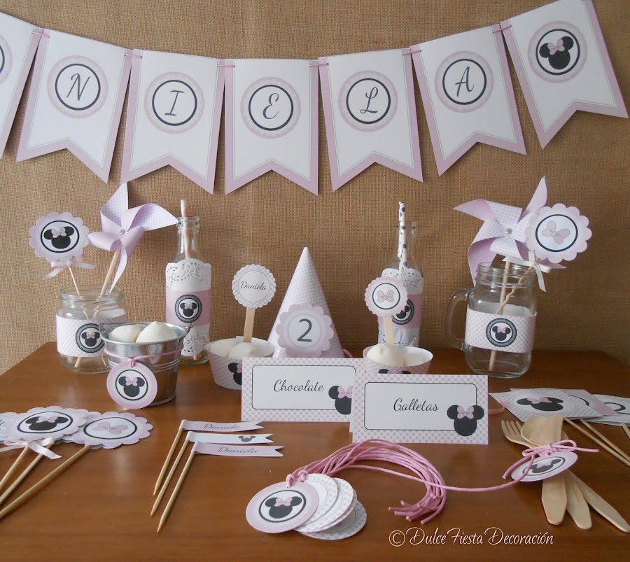 Si deseas adquirir el kit de decoración personalizada Minnie Mouse para tu próxima celebración en versión para imprimir puedes consultar aquí.