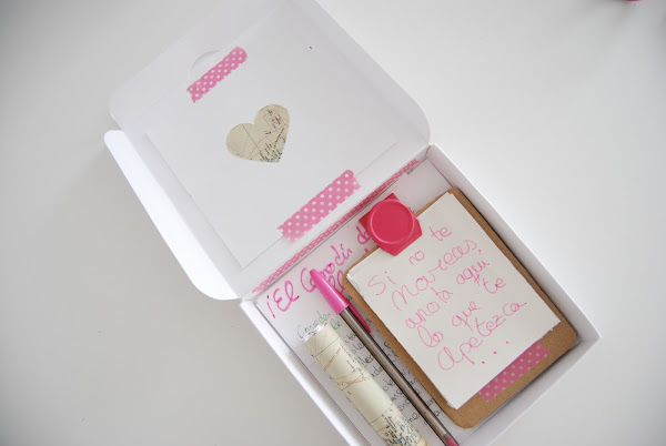 Cada caja tiene dentro un bolígrafo, unos caramelos y una pequeña libreta hecha con hojas recicladas, una pinza y un cartón donde pueden anotar aquello que se les ocurra siempre y cuando no se mareen, porque en un viaje largo se nos pueden ocurrir muchas cosas importantes, y siempre es mejor anotarlas: