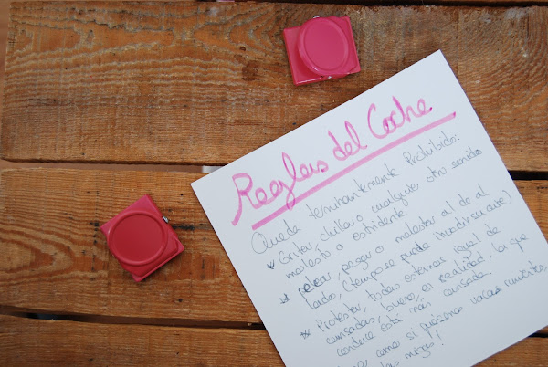 1. Las reglas del coche: Queda terminantemente prohibido: gritar, chillar o cualquier otro sonido molesto o estridente. Pelear, pegar o molestar al de al lado (tampoco se puede invadir su aire). Protestar, todas estamos igual de cansadas, bueno, en realidad, la que conduce está más cansada. Comer como si fuésemos vacas rumiando, no a las migas!!