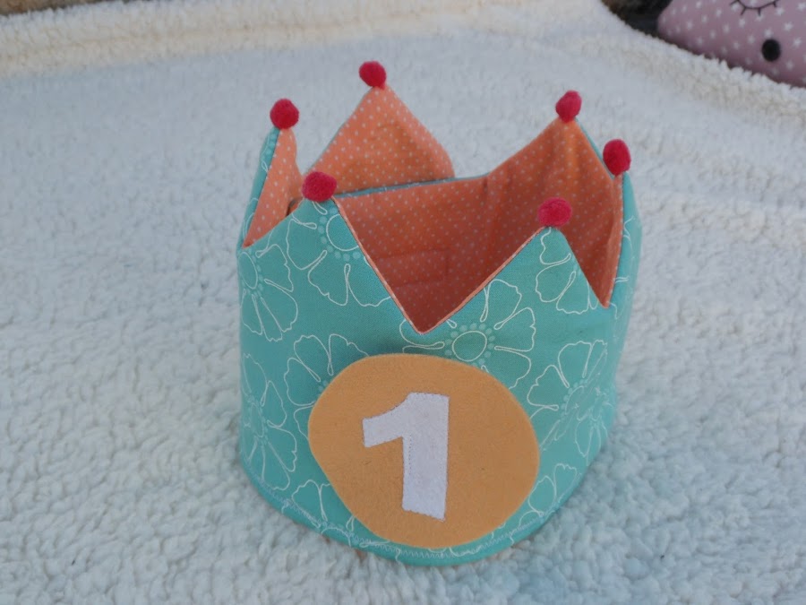 La corona en tonos mint para la tela exterior y naranja flojito para el interior.