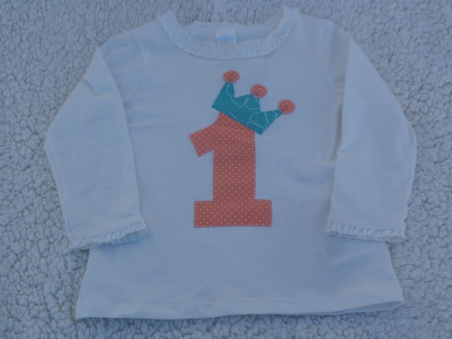 En la camiseta aplique el número uno con una corona utilizando las mismas telas.