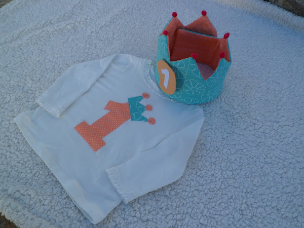 Pues aquí os muestro el conjunto de camiseta y corona que le hice a mi pequeña para su primer cumpleaños.