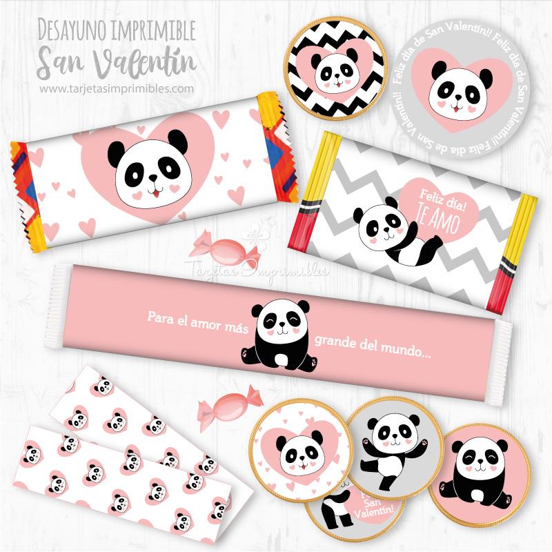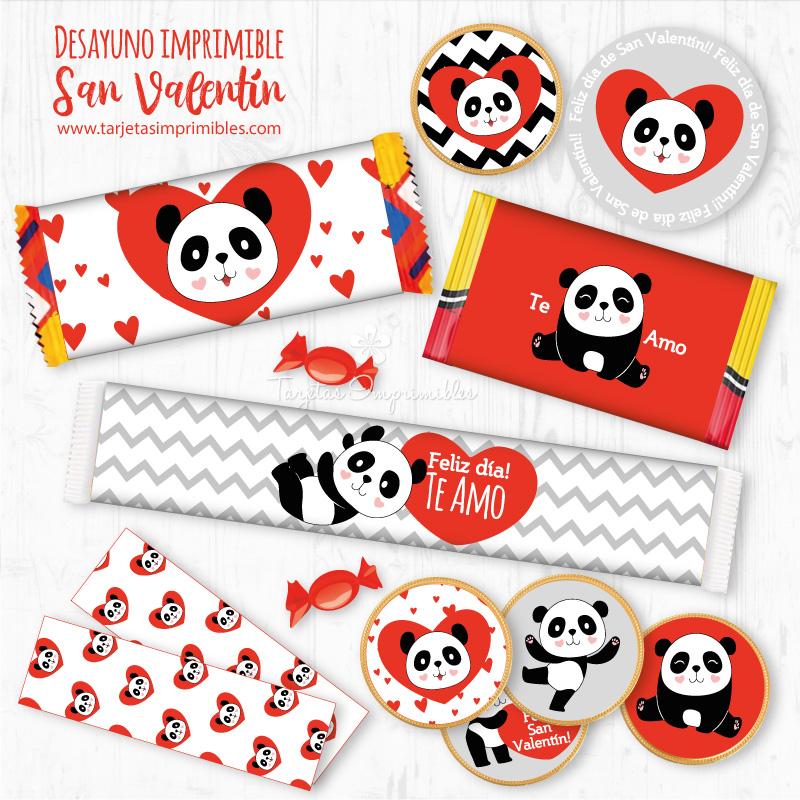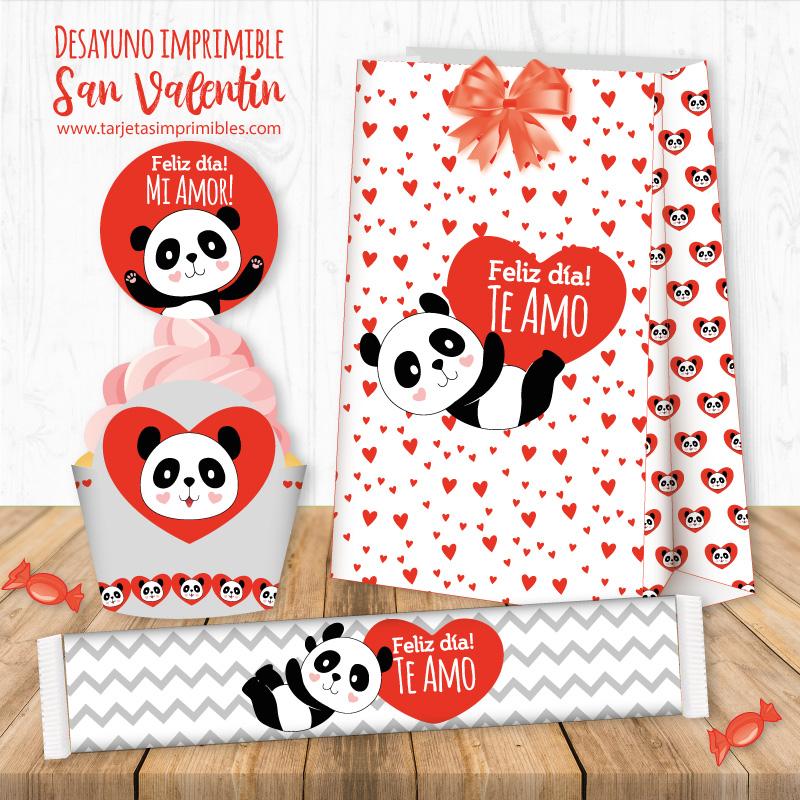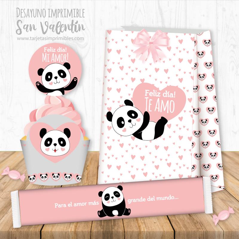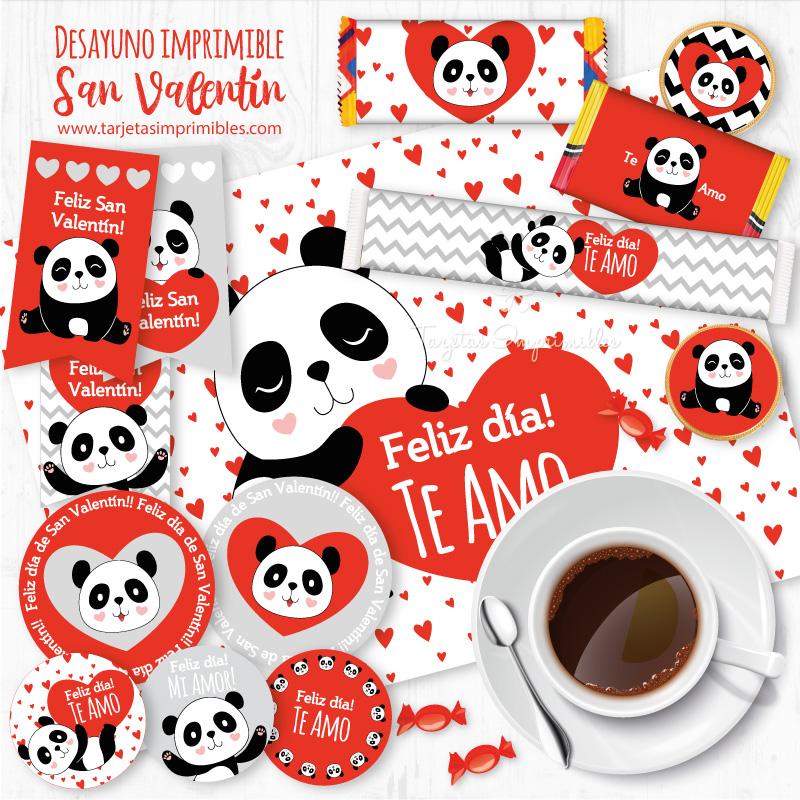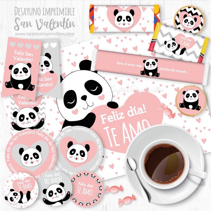 Se acerca el 14 de Febrero, día de San Valentín, y como cada año, diseño kits imprimibles para desayunos pensando en hacerte más fácil la elección de un regalo especial y dedicado exclusivamente a esa persona tan importante en tu vida. Ya te presenté hace unos días, un Kit imprimible con gatitos enamorados, y ahora quiero mostrarte los nuevos kits para desayunos con Pandas con corazones rojos y rosa.