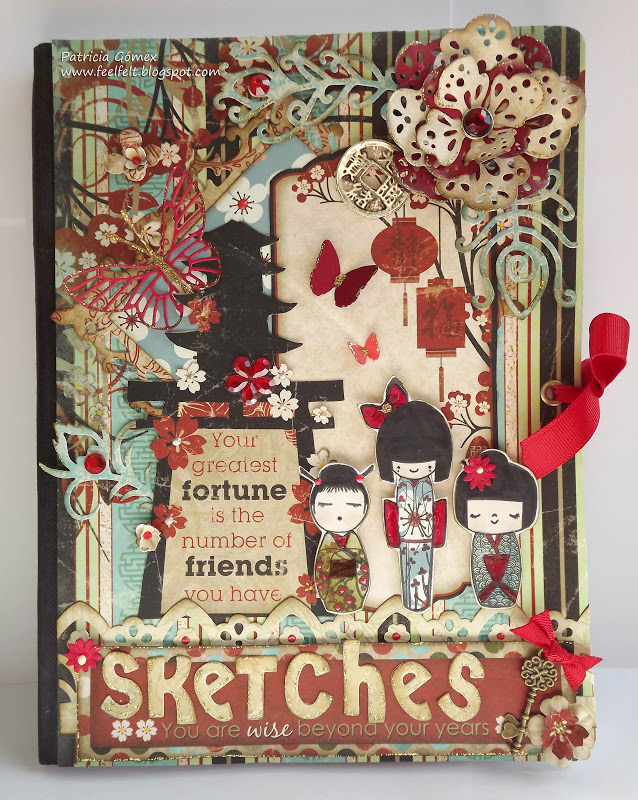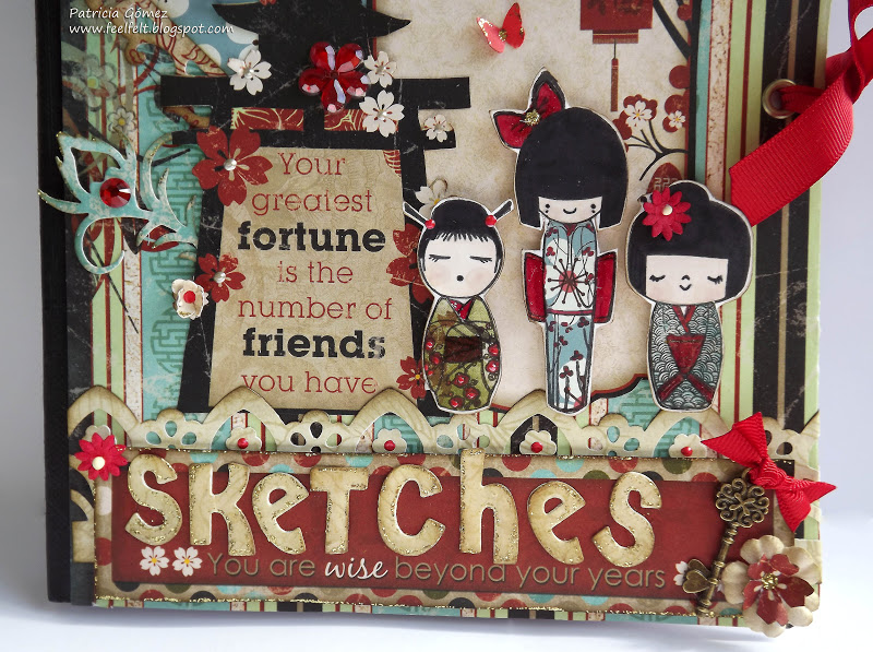 El texto Sketches, recortado varias veces y puesto capa sobre capa para mayor volumen, es el troquel Quickutz Sketchbook Alphabet.