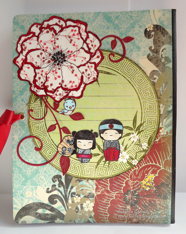 En la parte inferior, vemos unas kokeshis, coloreadas con promarkers que son los sellos Aladine Kokeshi Tampons.