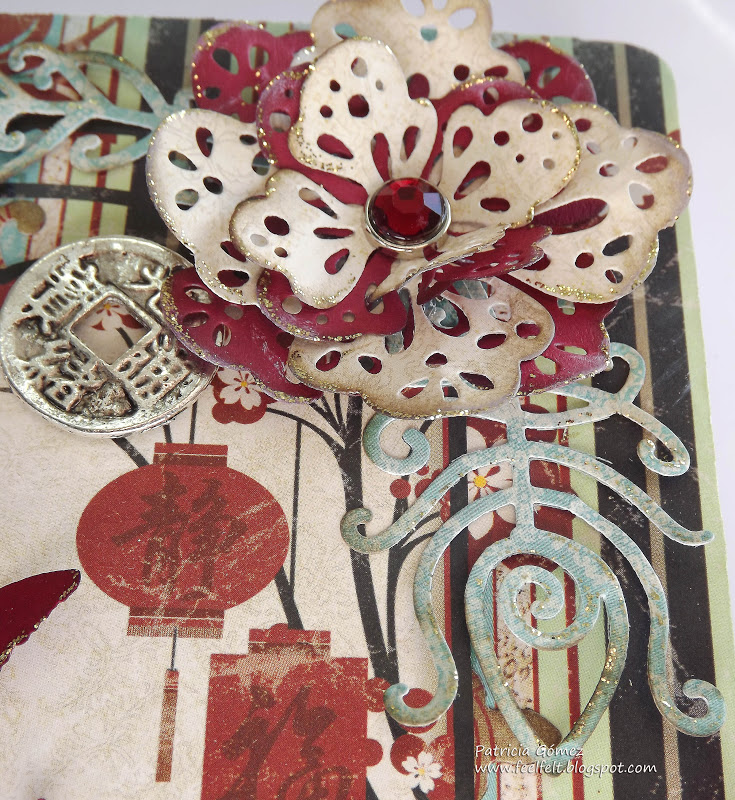 Los papeles usados han sido la colección Bo Bunny Serenity, unos papeles muy bonitos, pero algo complicados de combinar, por los potentes estampados.