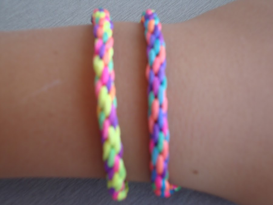 Se puede hacer con colores alternados o con éste que muestro tipo cola de ratón que ya viene matizado y quedan unas pulseras muy pintorescas para el verano. Les encantan.