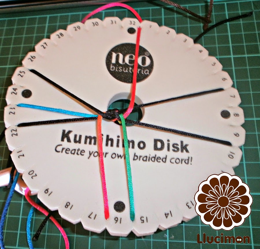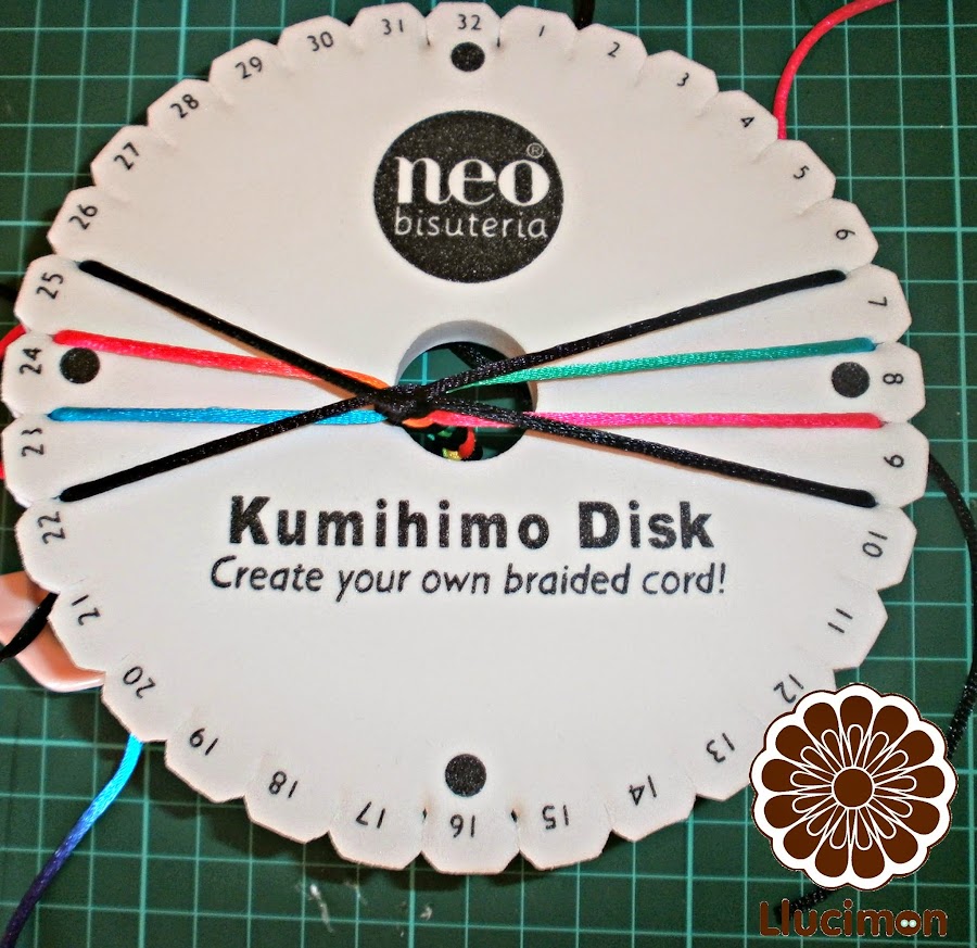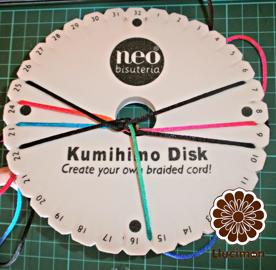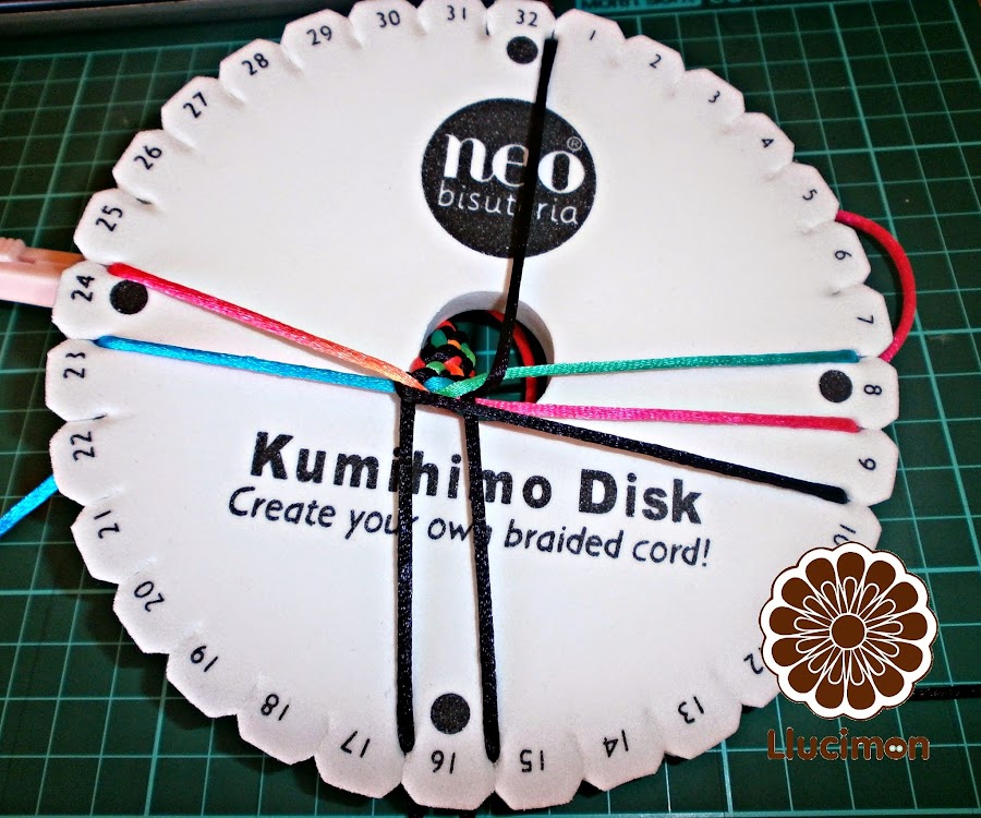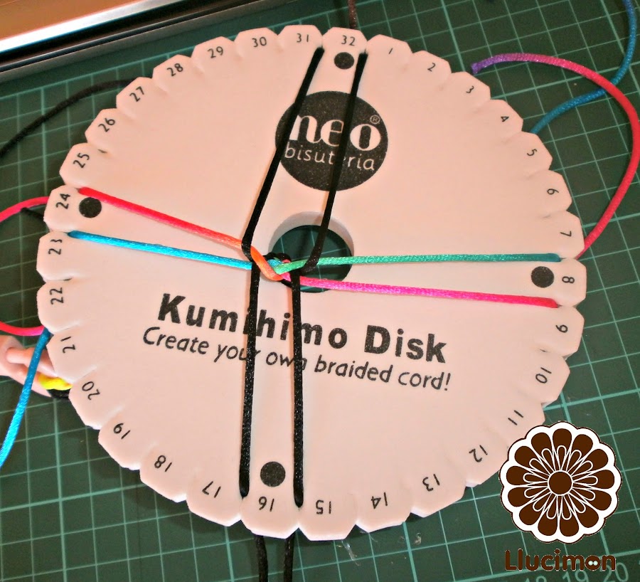 En nuestra tienda Llucimon puedes encontrar los discos para hacer Kumihimo como los que ves en la imagen y diversos colores y tamaños de cola de ratón, cuerda de nylon, etc... para que vayas probando y realizando diferentes modelos.