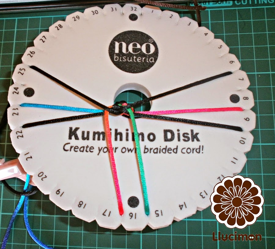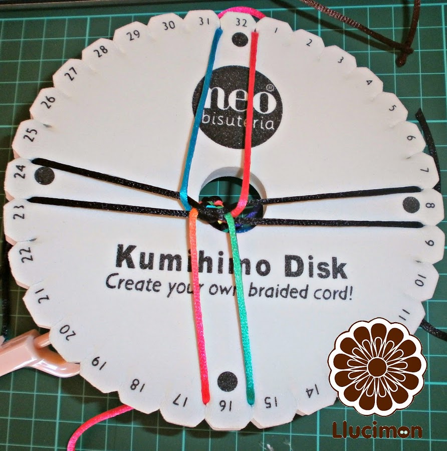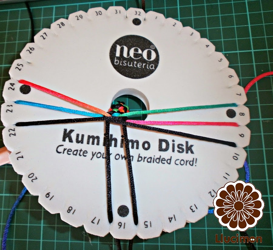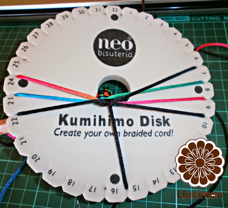 En nuestra tienda Llucimon puedes encontrar los discos para hacer Kumihimo como los que ves en la imagen y diversos colores y tamaños de cola de ratón, cuerda de nylon, etc... para que vayas probando y realizando diferentes modelos.
