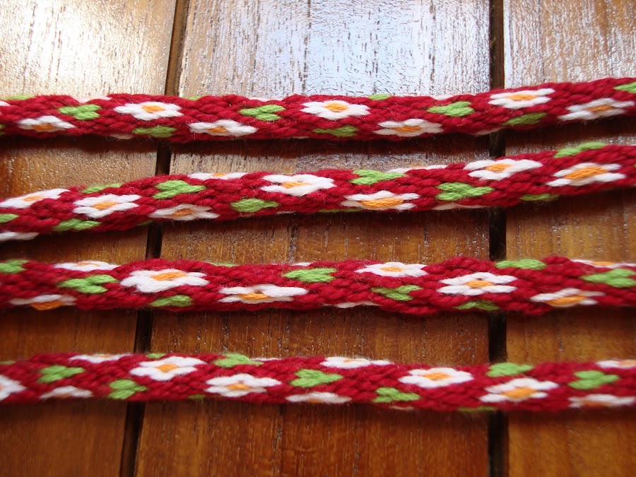Segundo obstáculo, esta vez no quería una pulsera, ni un collar sino un cinturón de atar, suficientemente largo para colgar. Trabajo con hilos de bordar de longitud 250cm enrollados en unas bobinas de fabricación casera que son la forma me ha dado el mejor resultado. Cartones cortados de forma rectangular (larguitos para que cuelguen hacia abajo, no pesan ni se enredan) con una muesca arriba. El hilo se enrolla a modo de bobina, cuanto más corto lo tengamos mejor porque menos se nos van a enredar, no hay problema porque enganchamos la hebra en la muesca y es muy fácil ir soltando hebra a medida que la vamos necesitando.