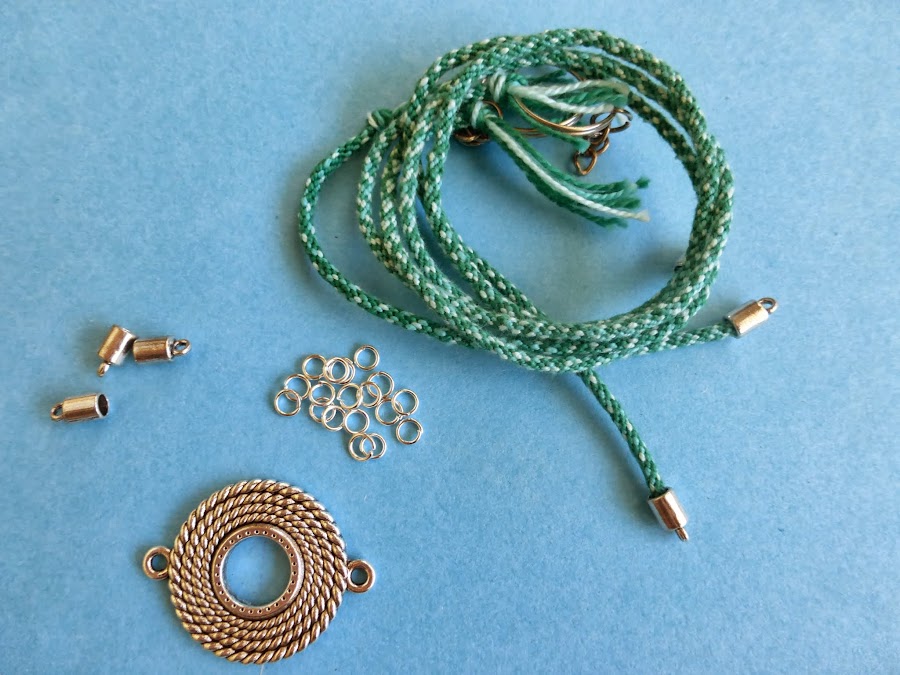 Bisuteriaycia: Así deben quedar los extremosAhora solo queda unir con una anilla las tiras a la pieza central, y unir los tres cordones en el lado opuesto con otra anilla y colocar el cierre.