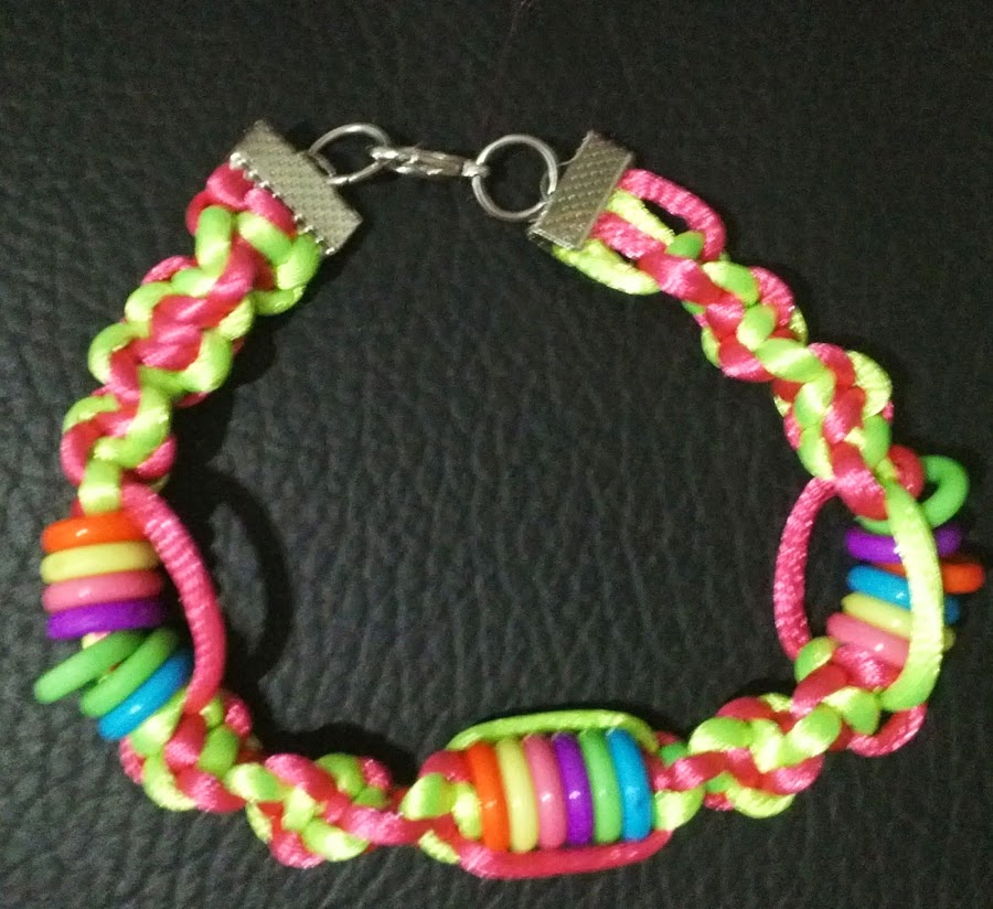 Hoy vamos a hacer unas pulseras utilizando abalorios y un cordón trenzado con un disco kumihimo. Creaciones Bisuteriaycia Lo primero que hay que hacer es el cordón, con el disco kumihimo se puedes crear infinidad de cordoneshoy nosotros usaremos el cordón mas sencillo.Tutorial aquí. Para la primera pulsera utilizaremos una entrepieza plateada de la cual colgaremos tres medallitas y dos bolas abomb ...