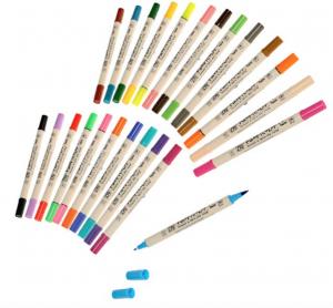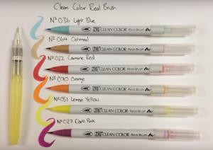 Con punta de cepillo de cerdas de nylon, el rotulador Clean Color Real Brush es un colorante acuoso con una gama de hasta 80 colores. Es pequeño, muy flexible y con gran elasticidad, lo que facilita el paso de líneas delgadas y demasiado gruesas de una sola vez. Se puede comprar en juegos de 6, 12, 24, y 80.