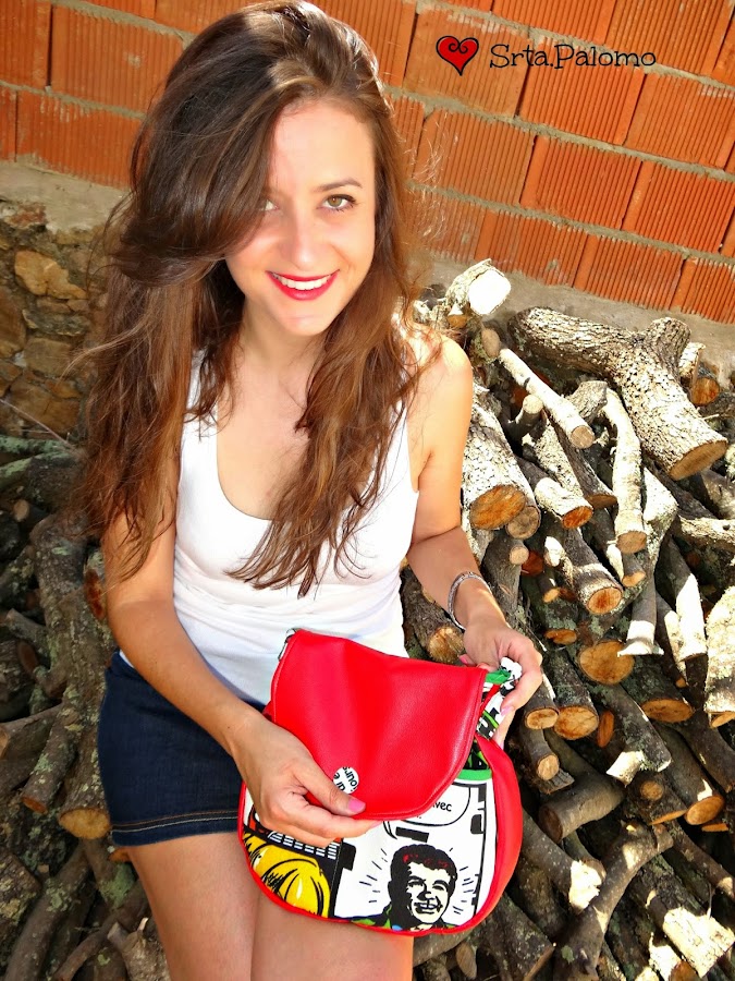 Y desde entonces le dí vueltas: ¿a ver cómo le hago un bolso a La Lola? Tengo otra tela de cómic que me gusta mucho más porque era colorida y tenía frases en francés asique decidí hacerlo con ella y el resultado es molongui. También es cierto que la modelo lo luce con todo el arte del mundo...
