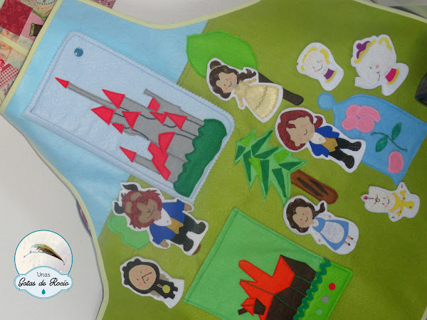 En esta ocasión me preguntaron si podía ser un delantal con "La Bella y la Bestia" como temática, y como no vi inconveniente dije: "pues claro que sí, encantada". Y desde la rosa encantada, hasta el castillo de la Bestia, he reproducido lo principal de la historia para que el maestro Manu disfrute con la narración y sus niños.