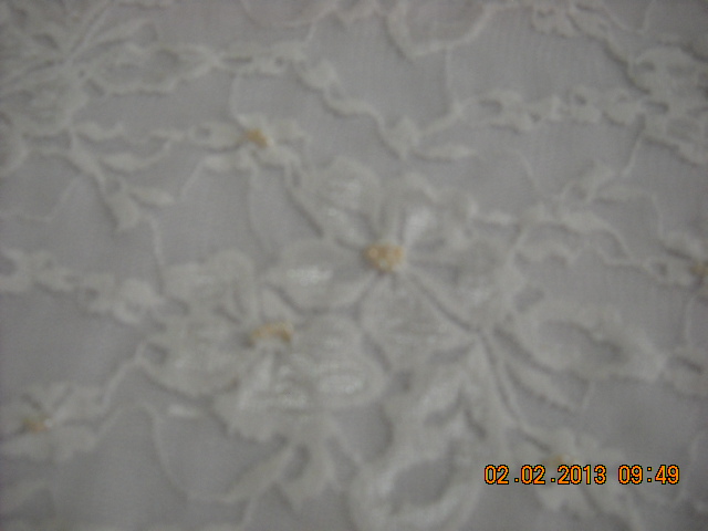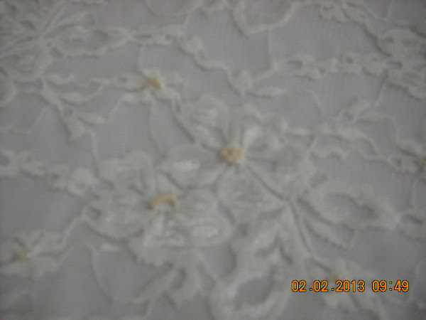El encaje del vestido que personalmente me dedique a bordarlo. de mas esta decir que tambien cosi el vestido.